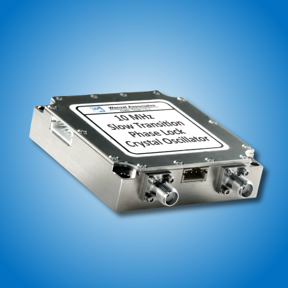 Phase Lock Crystal Oscillators are widely employed in commercial and military applications requiring a precise signal synchronized with a more stable external reference and/or improved phase noise performance. Wenzel Associates’ phase lock oscillators consist of an oven compensated low or ultra-low phase noise crystal oscillator, comparator, loop amplifier and dividers/multipliers for scaling the reference and internal oscillator signals for locking at a common frequency. When a reference is present, the comparator will produce an error voltage which is applied to the varactor of the internal oscillator, and will electrically tune the oscillator until the frequency is matched and phase locked with the reference. Wenzel offers PLO solutions with output frequencies from 5 MHz to 12 GHz. Please contact our technical staff to discuss your specific application needs.