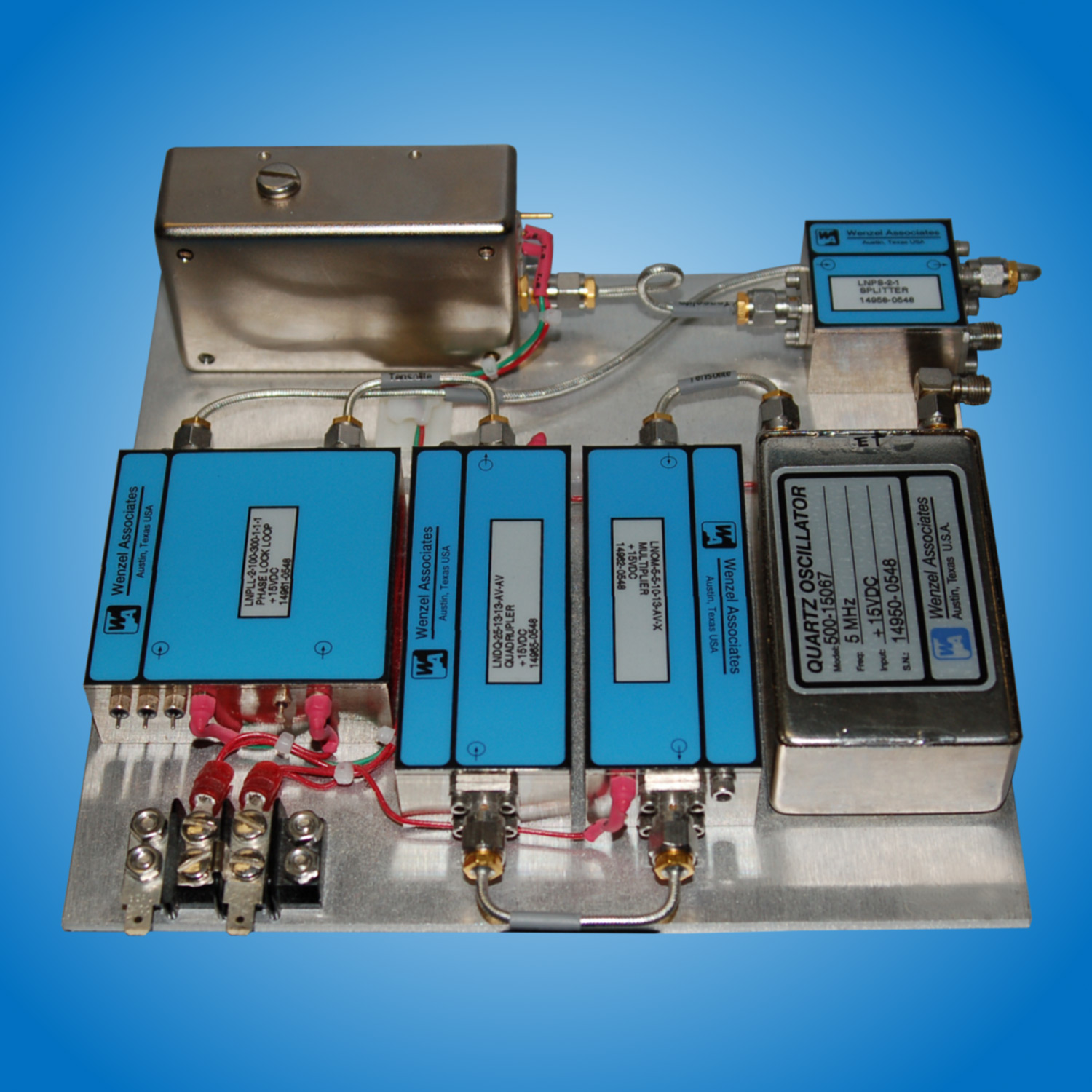 Our Blue Tops RF Modules are RF system building blocks with verified state-of-the-art phase noise performance and exceptionally low harmonic and spurious content. These modules enable RF systems designers to quickly configure frequency generating systems with low noise outputs to 16 GHz.